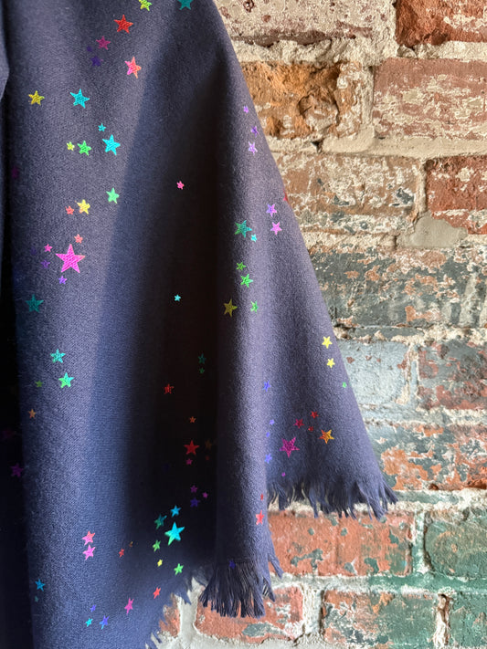 Dark Navy Long Scarf with Multicolour Metallic Stars