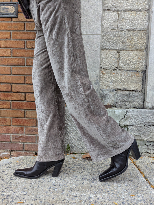Taupe Faux Crushed Velvet Pants with POCKETS