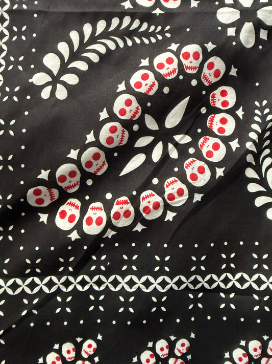 100% Cotton Square Black White Red Scarf- Bandana Print with Skulls
