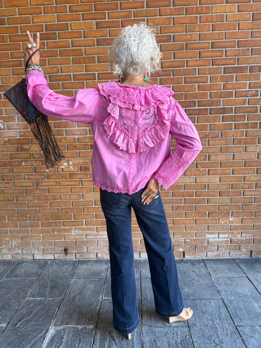 100% Cotton Eyelet Shirt - PINK