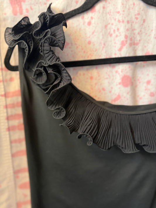 Black One Shoulder Ruffle Bodysuit