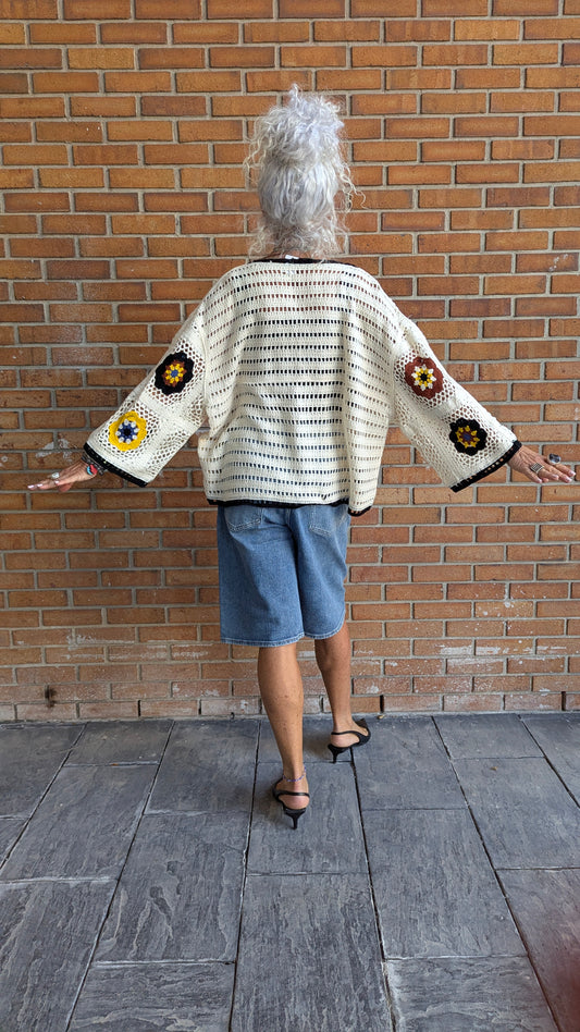 100% Cotton Granny Patch Short Cardigan