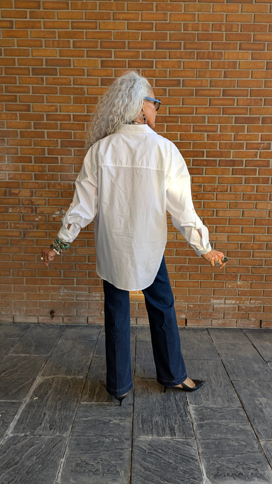 100% Cotton Oversized Button Front Shirt- WHITE