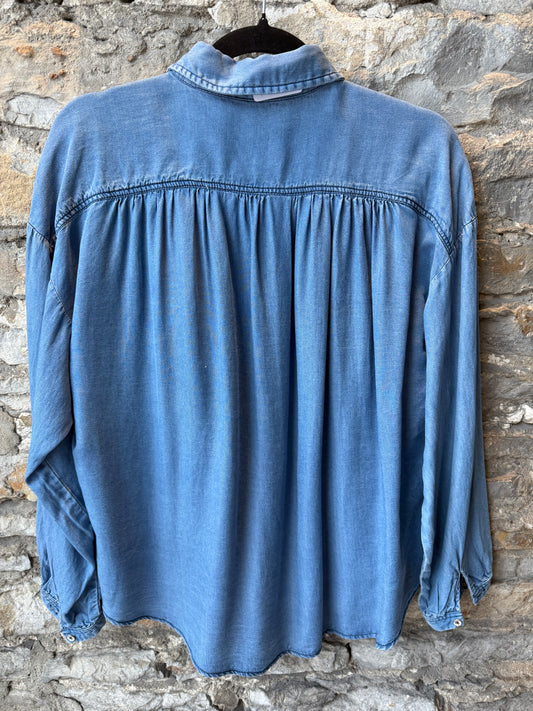 Tencel Lightwash Button Front Jean Shirt - Blue