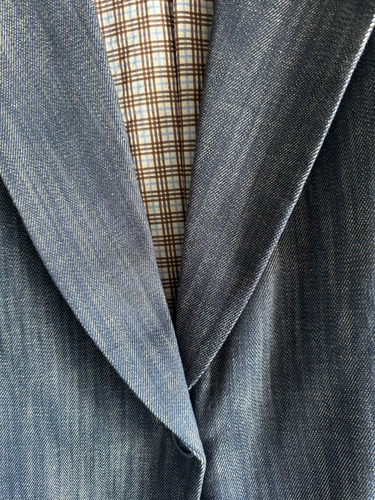 100% Cotton Dark Denim One Button Blazer with Plaid Lining
