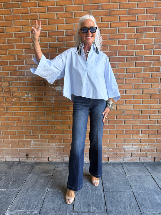 100% Cotton Oversized Button Front Shirt- LIGHT BLUE