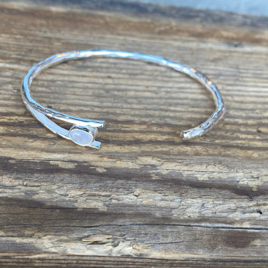 Hammered Cuff Bracelet with Moonstone - SILVERRegular price $55.00 CADRegular priceUnit price / per-
