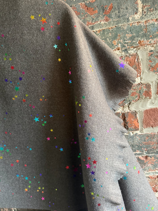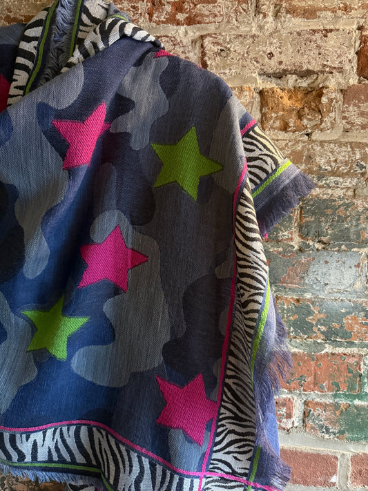 Dark Navy Long Scarf with Multicolour Metallic Stars