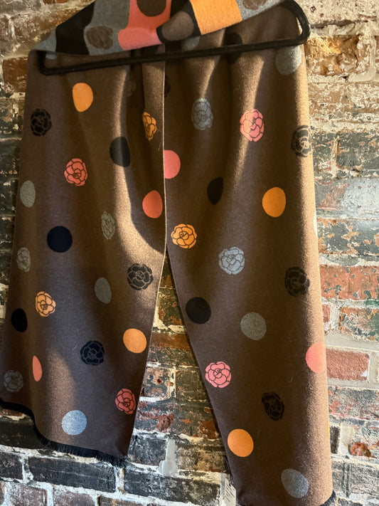 Long Multi Pattern Reversible Scarf - Rust, Brown, Coral, Grey