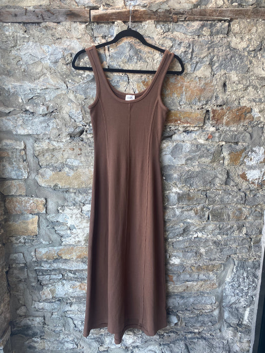 Ribbed Cotton Long Tank Dress - BROWN