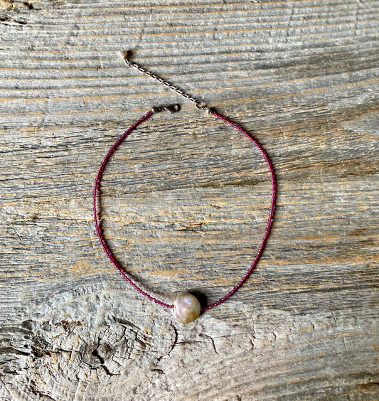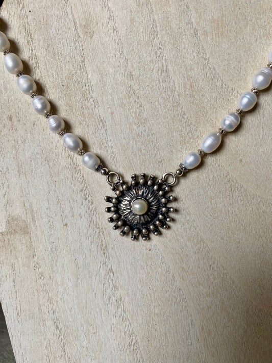 16" Freshwater Pearl Necklace With Oxidized Sterling Silver & Pearl Pendant