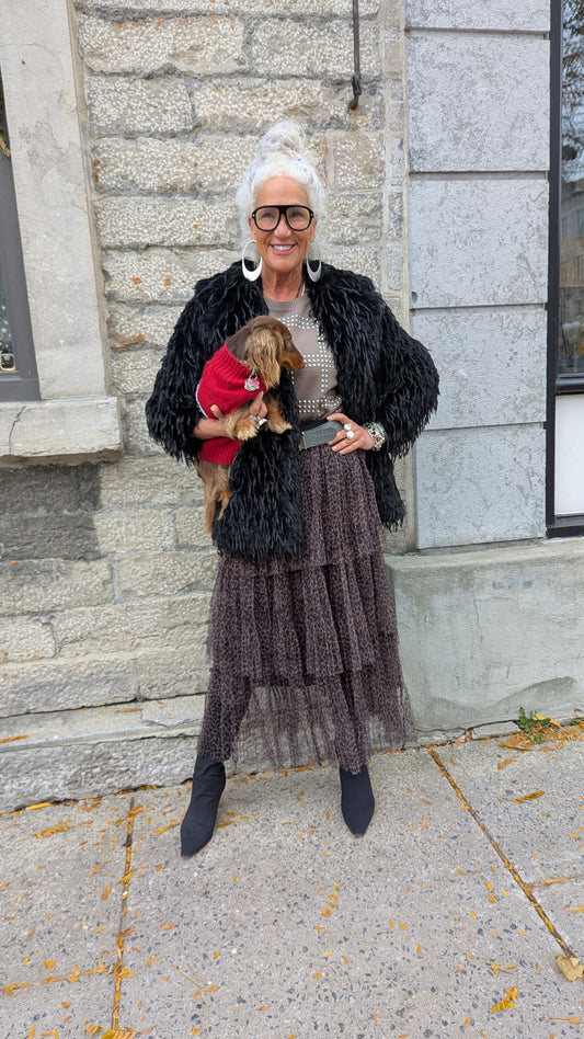 Mixed Animal Print Long Scarf - Tan, Black, Rust, Grey