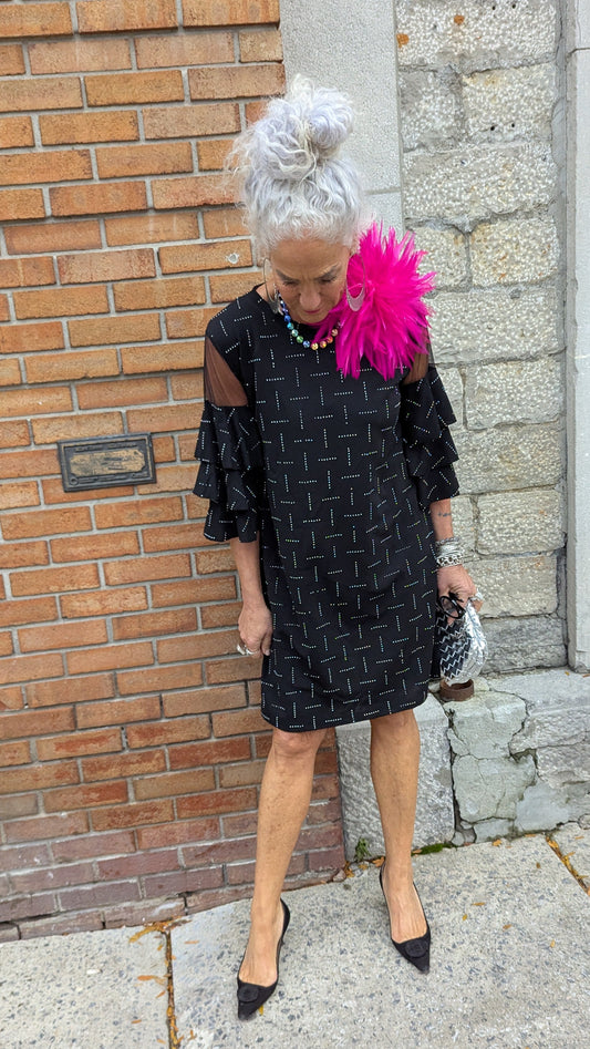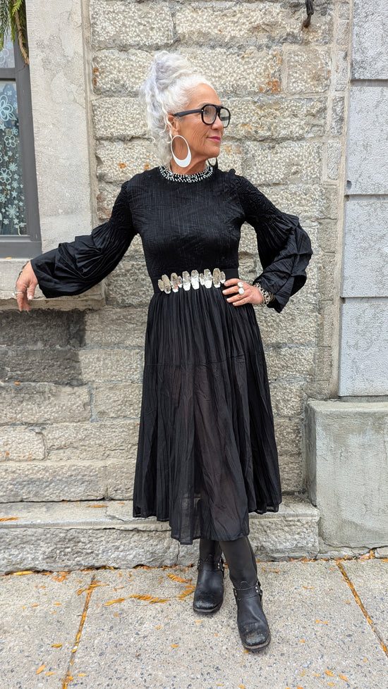 Black Smocked Maxi Dress with Pearl and Rhinestone Detailing