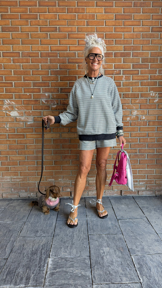 Oversized 100% Cotton Grey & White Striped Crewneck