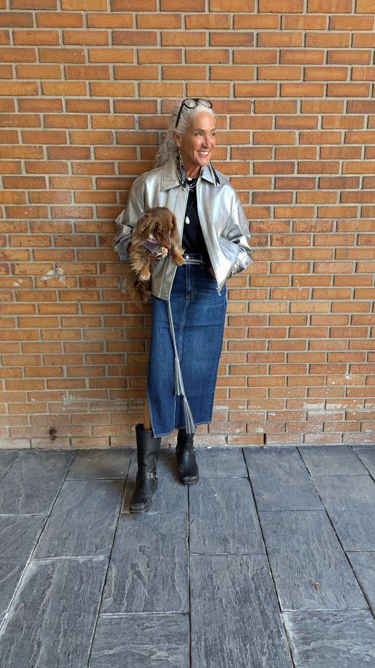 Denim Maxi Skirt with Slit- Dark Denim
