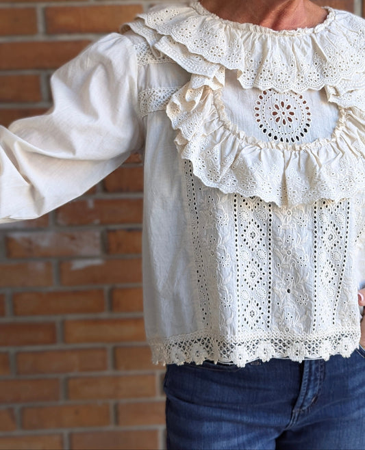 100% Cotton Eyelet Shirt - BEIGE