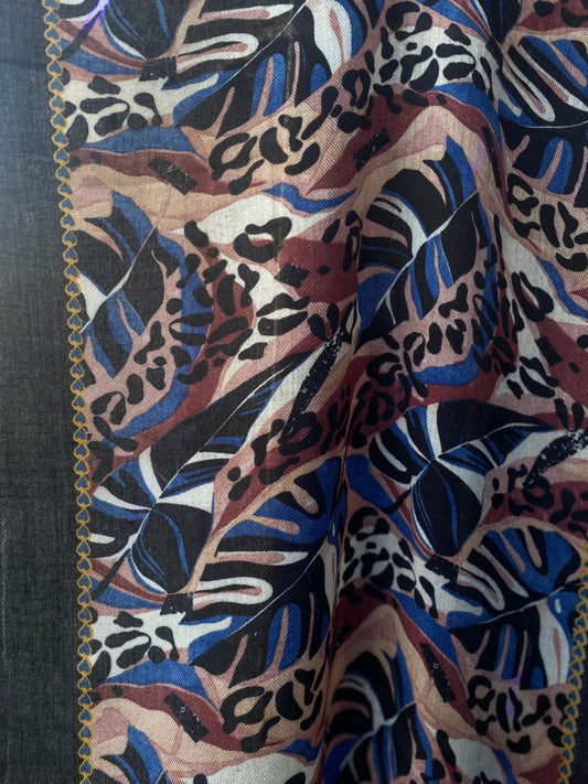 Cable Knit Cardigan with Sequin Animal Print Sleeves