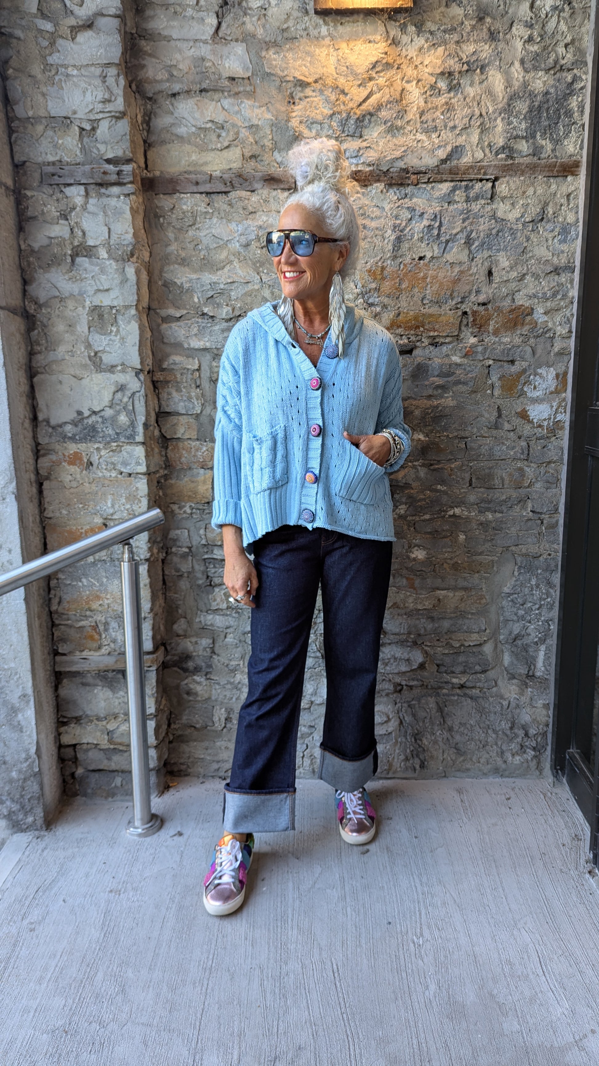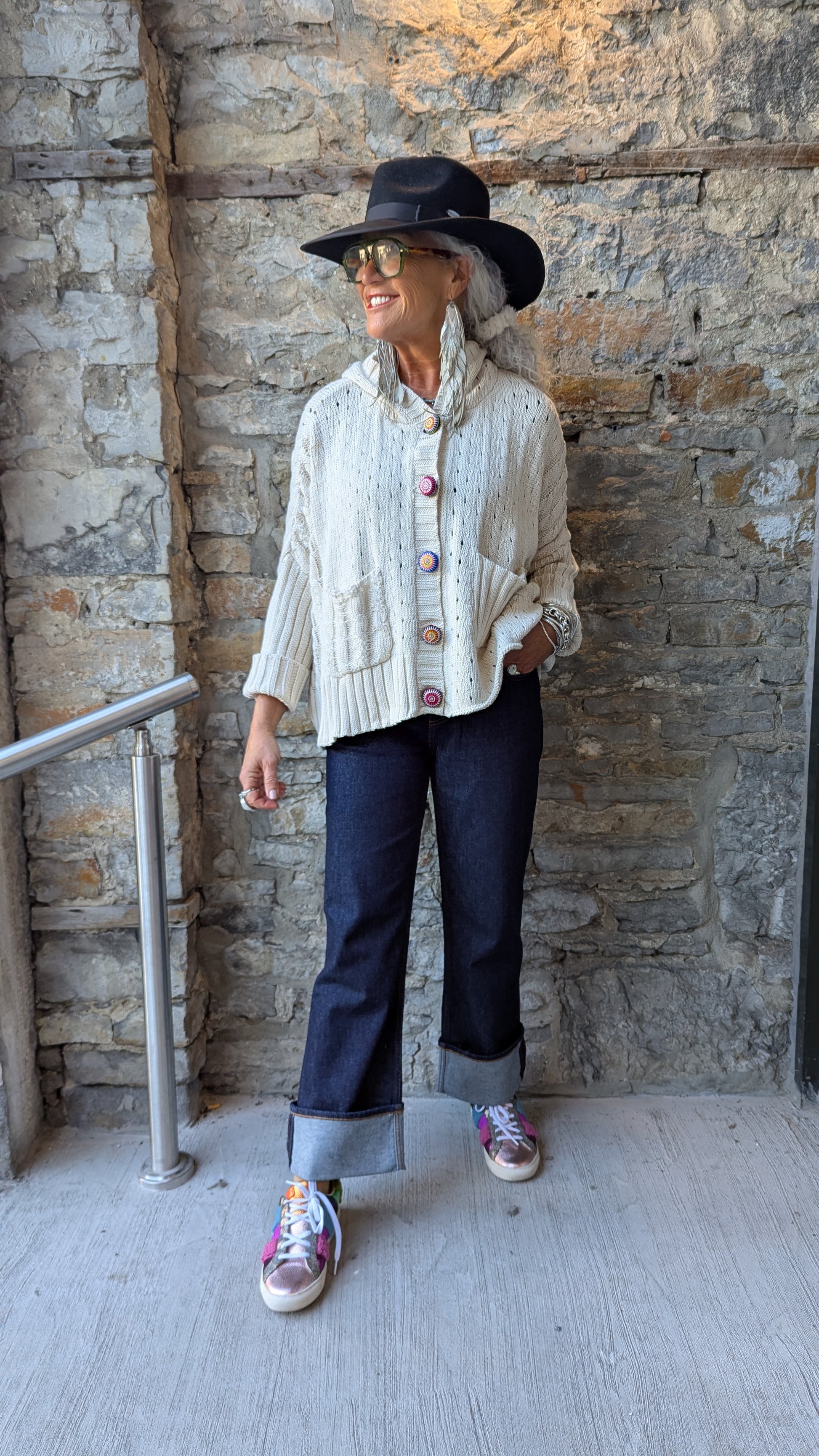 100% Cotton hoody cardigan with bright coloured buttons- BEIGE