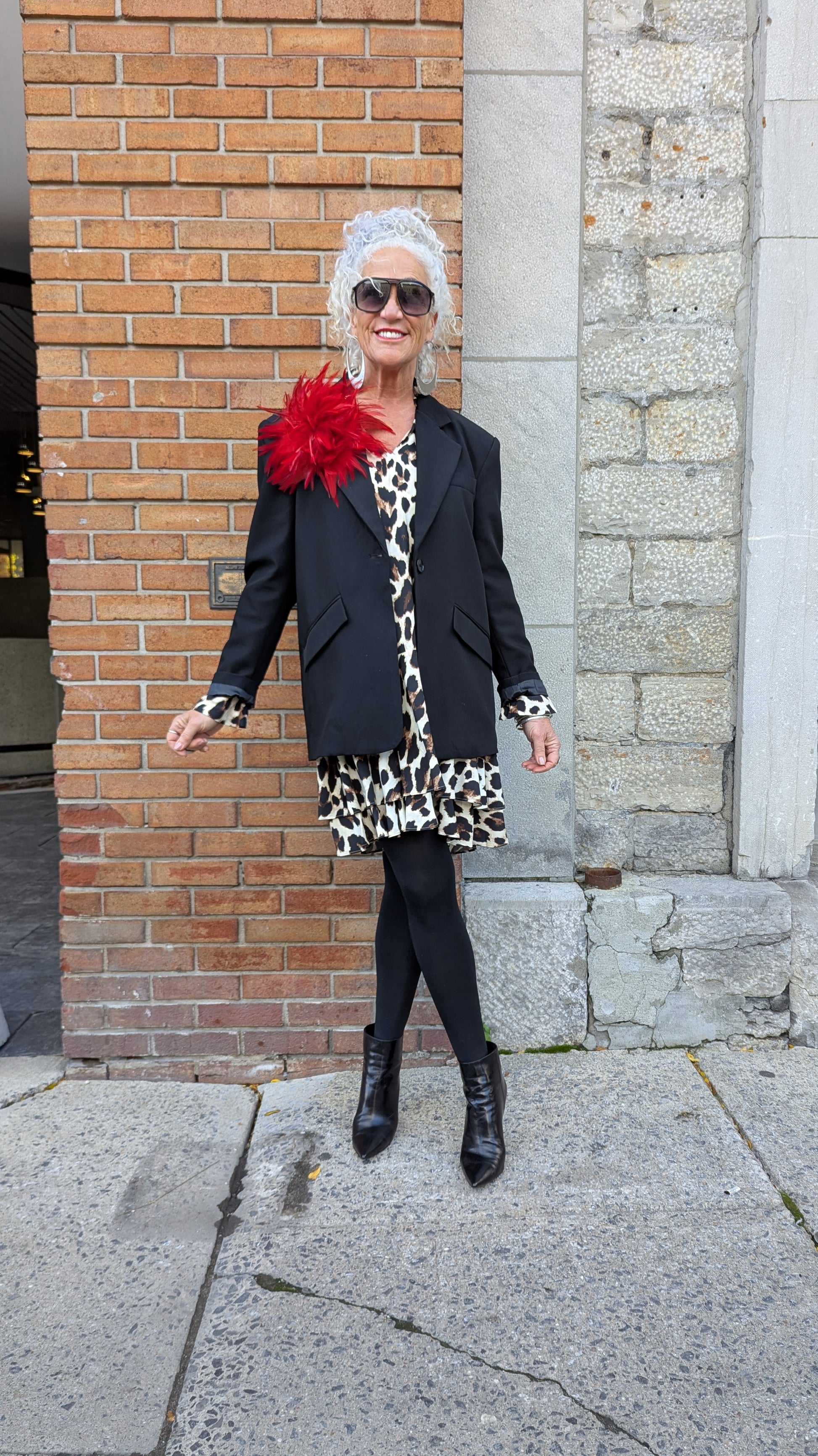 Animal Print Short Tiered Tunic Dress Brown Black Ivory