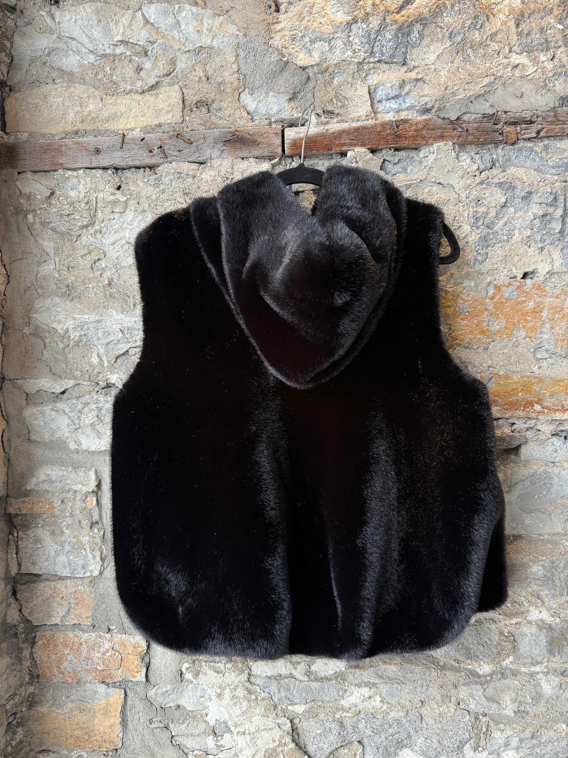 Black Short Faux Fur Zip-up Vest