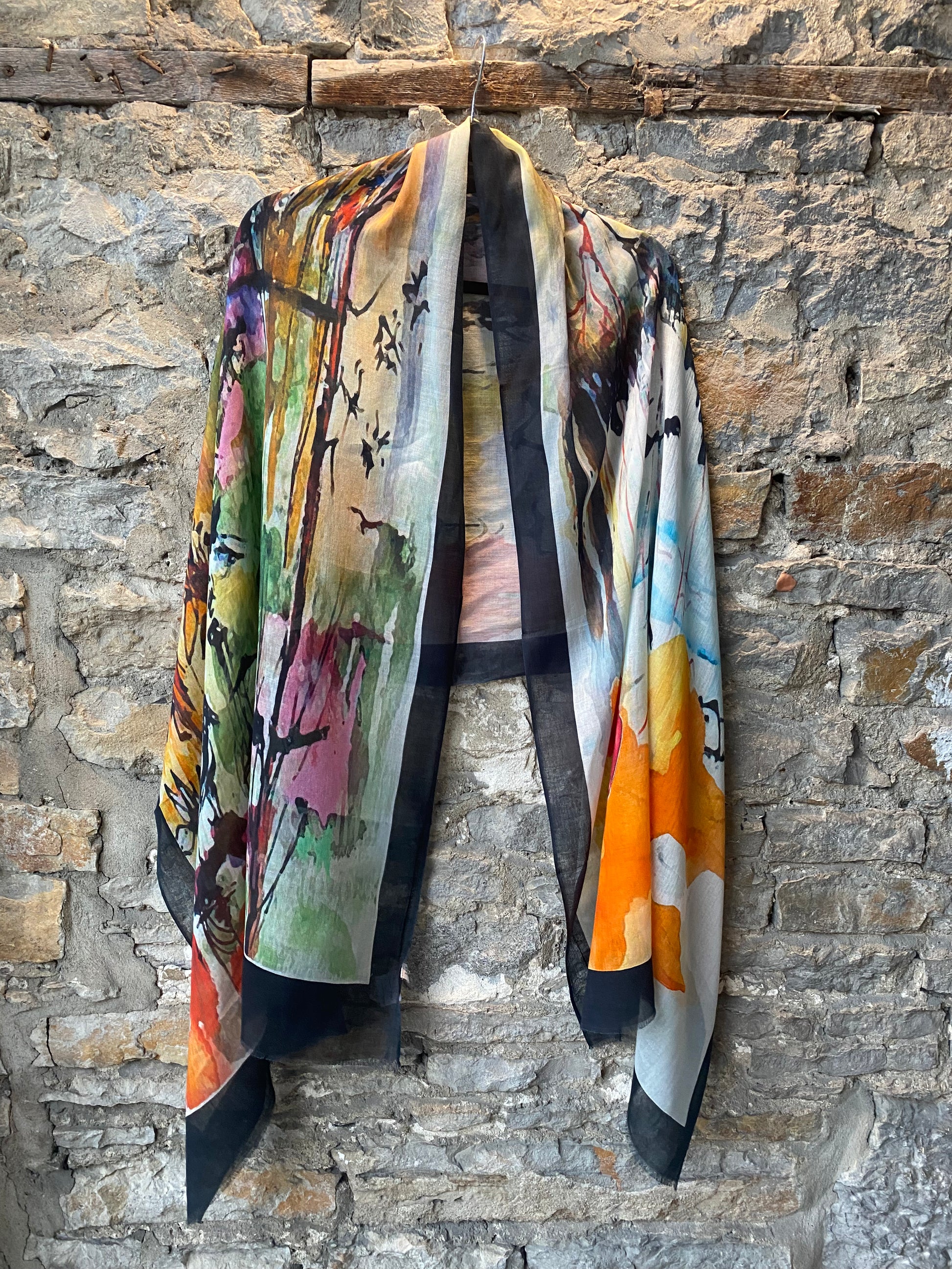 Cotton Blend Watercolour Abstract Scarf