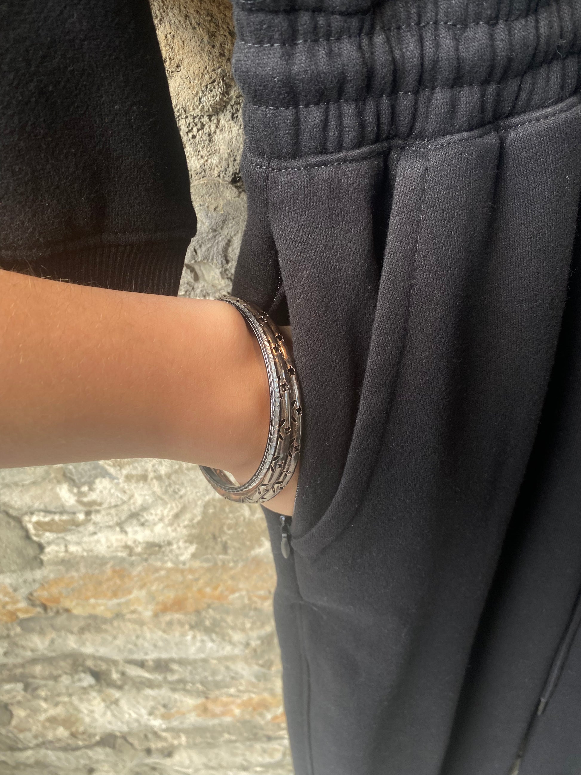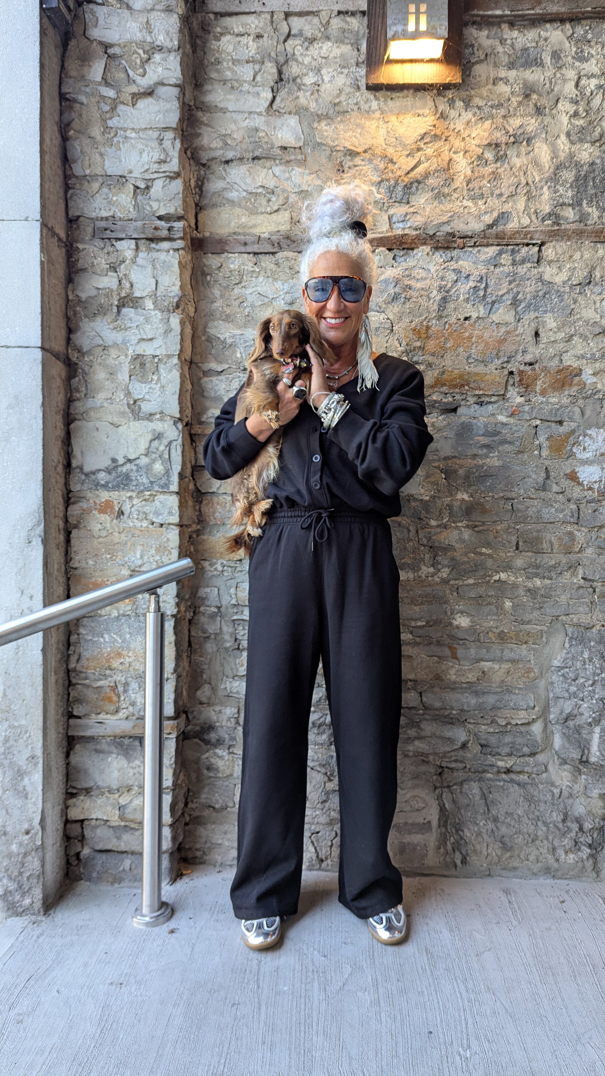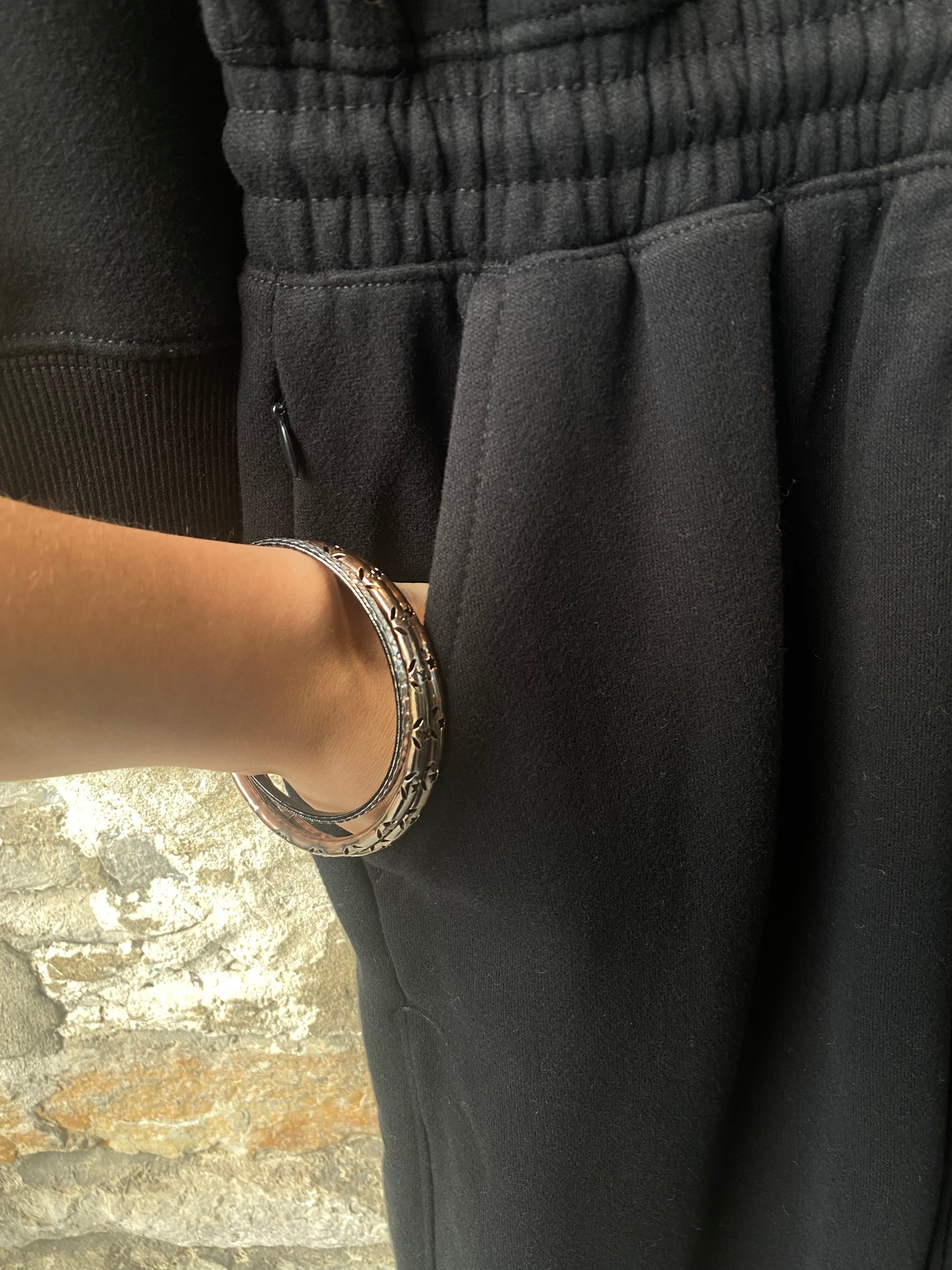 Cotton Long Sleeve Wide Leg Jumpsuit- BLACK