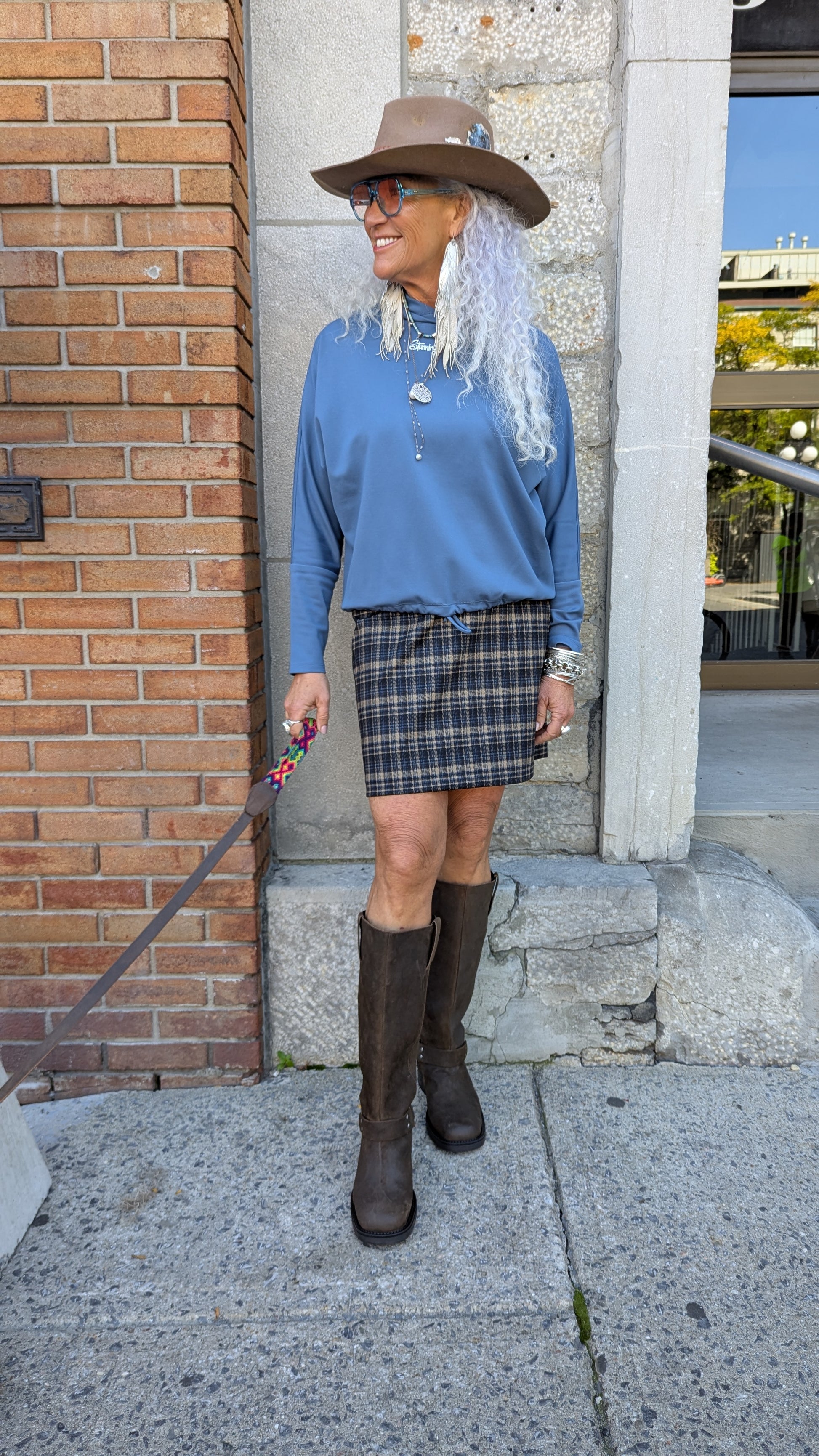 Solid Lightweight Ponte Hoody Sweatshirt with drawstring waist- Blue