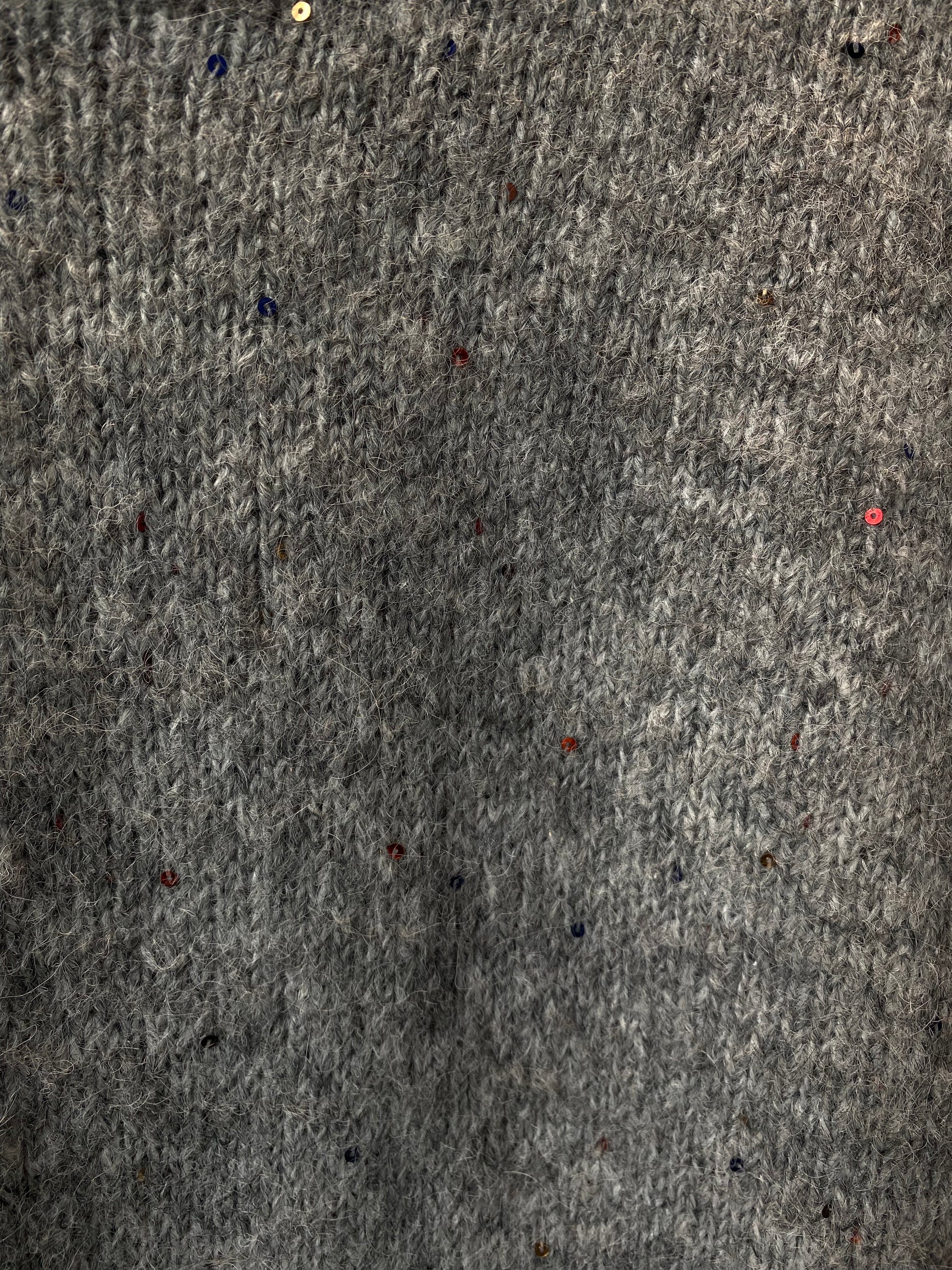 Oversized Grey Knit Sweater with Multicolour Sequins