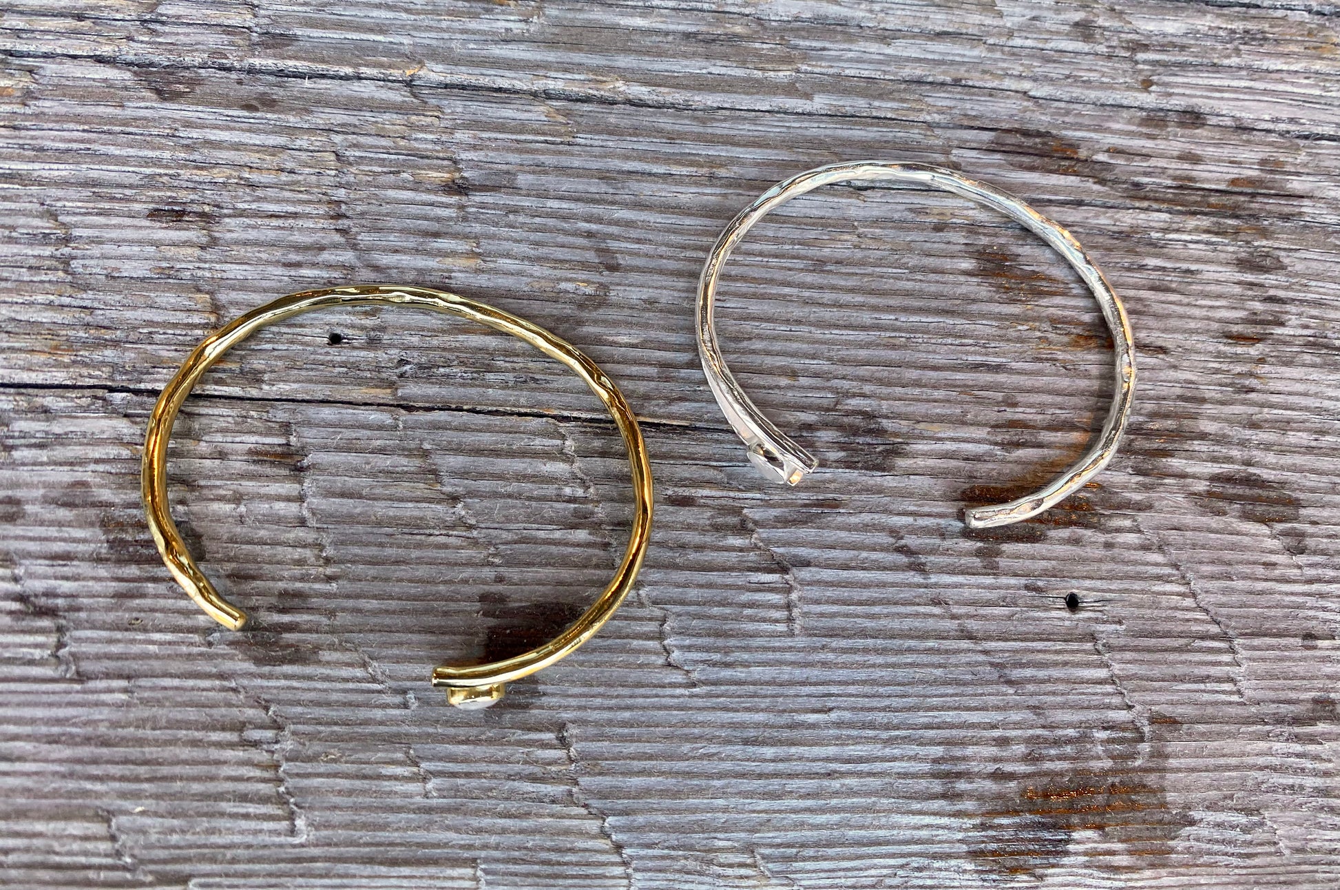 Hammered Cuff Bracelet with Moonstone - GOLD