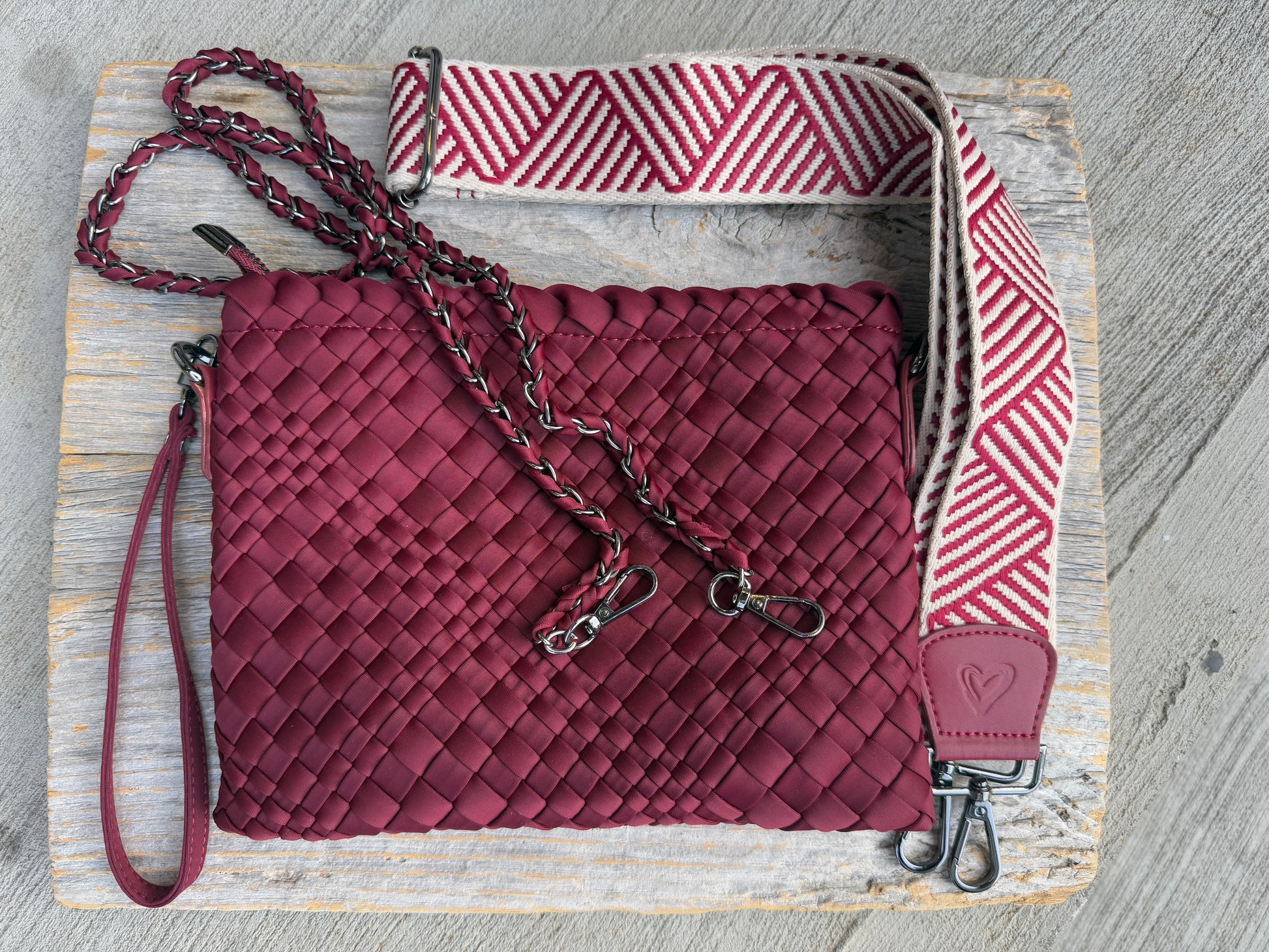 Hand Woven 3-in-1 Crossbody Messenger Bag - BURGUNDY