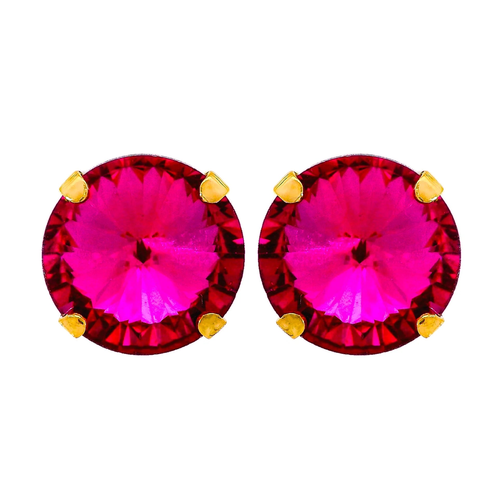 12mm Iridescent Studs with 24k Antique Gold Plated Hardware- MAGENTA