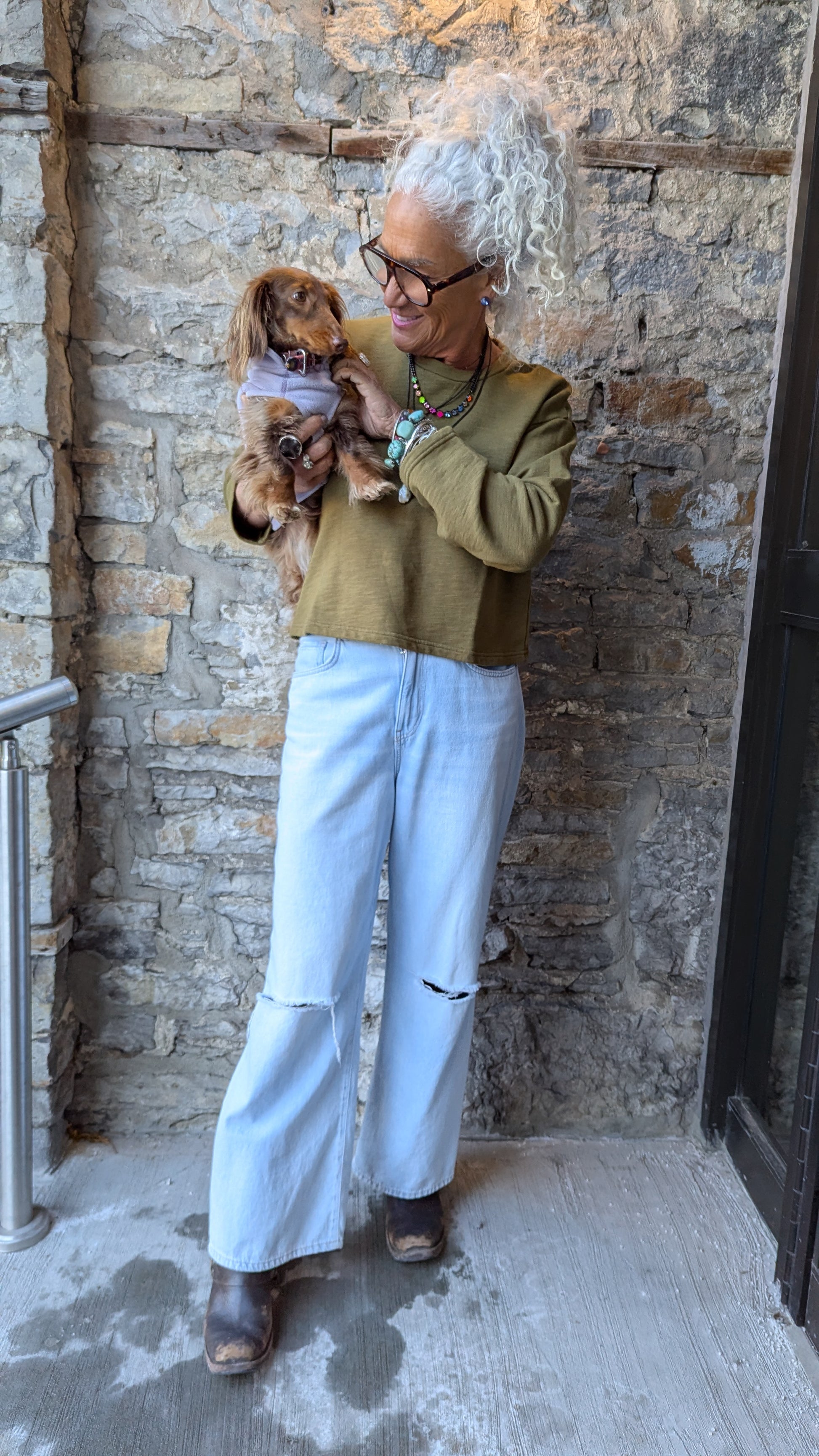 Crewneck Cotton Boxy Wide Sleeve Sweatshirt- Dark Olive