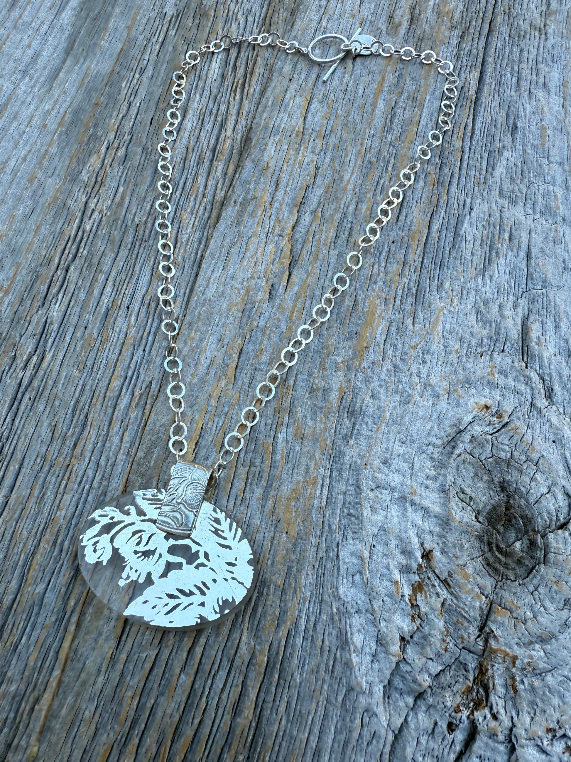 - 2" x 1" vintage frosted glass pendant with silver overlay ( looks like Lalique)