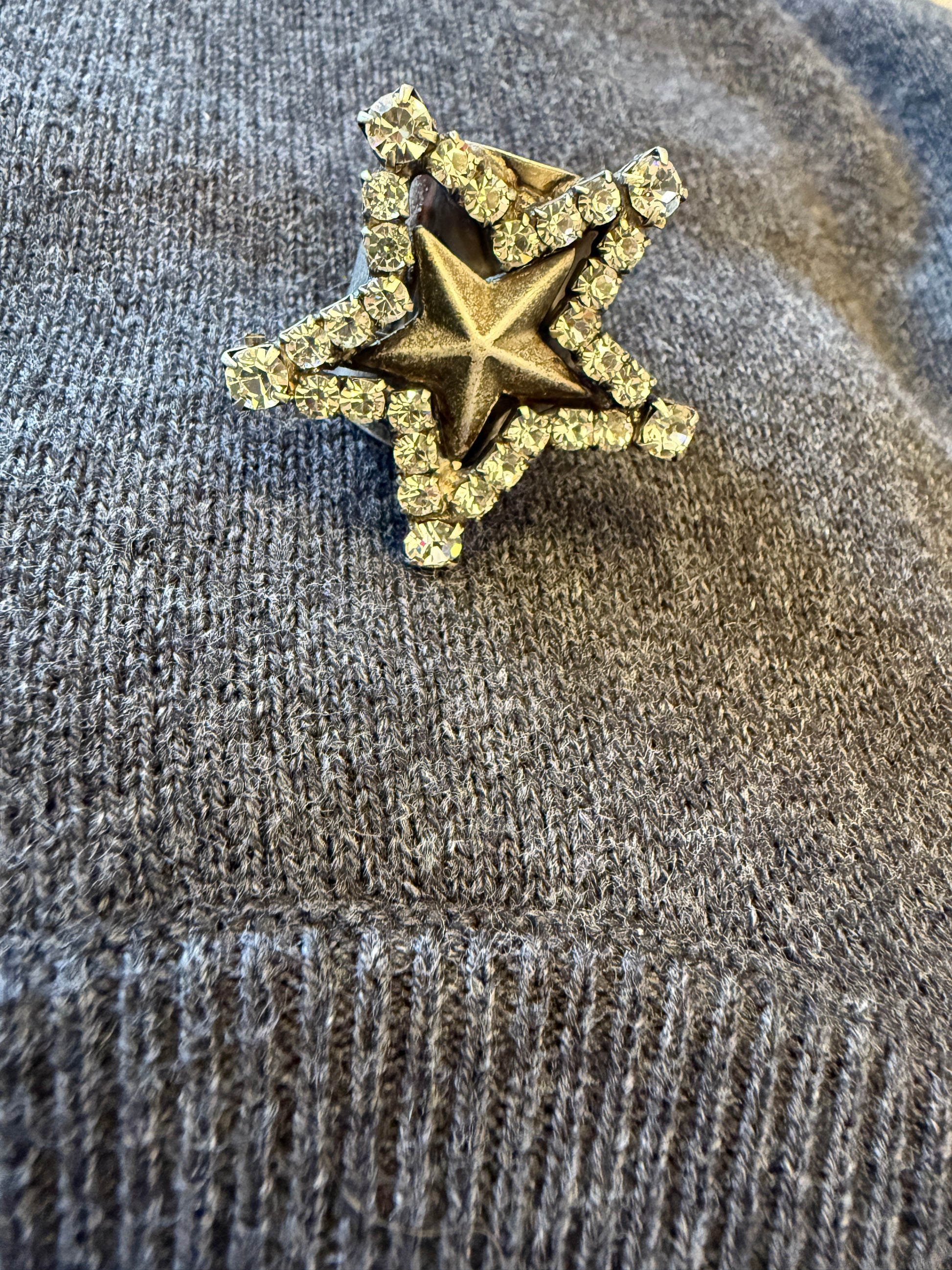 One Size Silver Swarovski Crystal Star Ring- Antique Silver