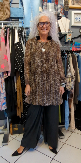Pleated Long Sleeve animal print dress