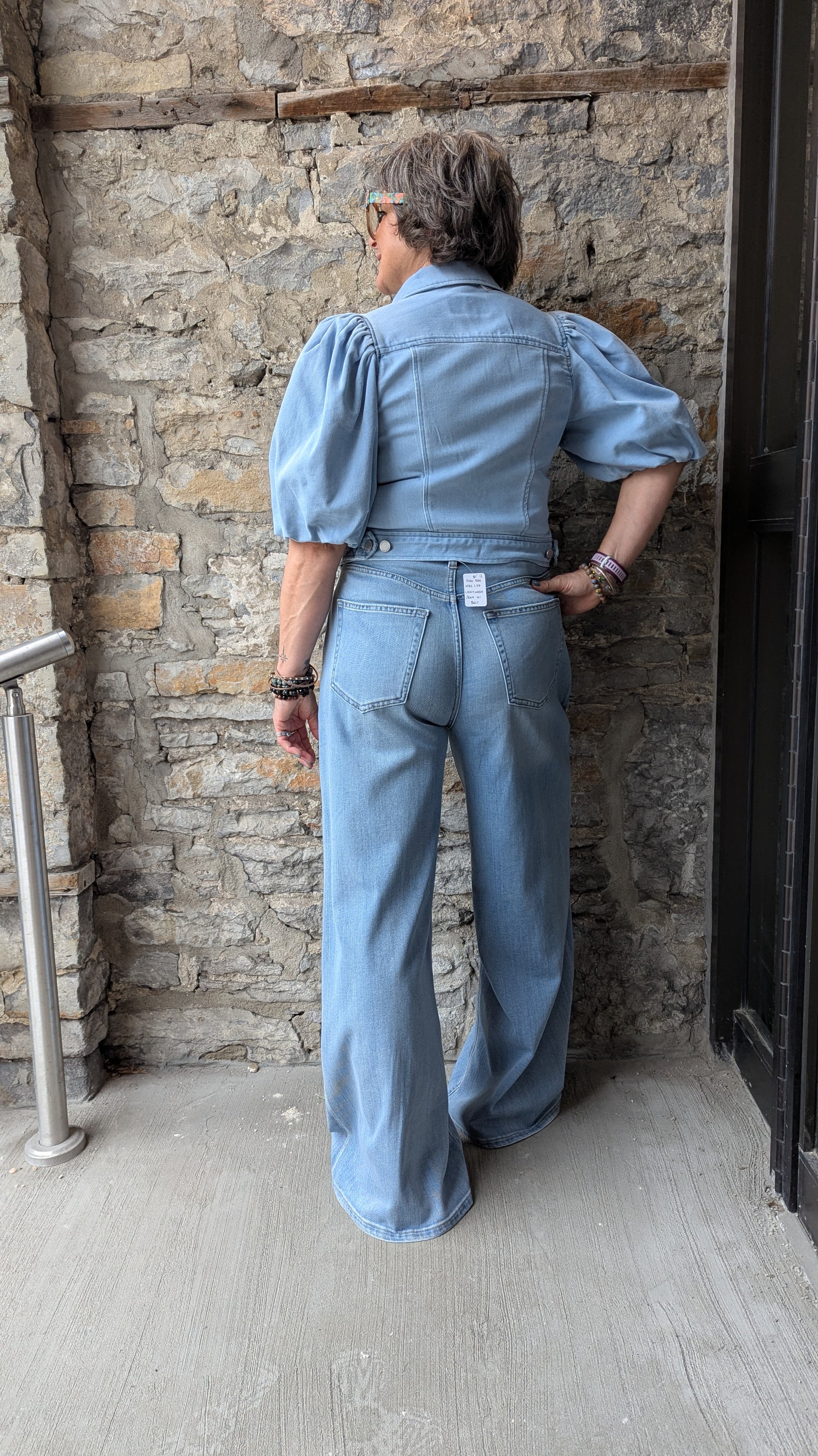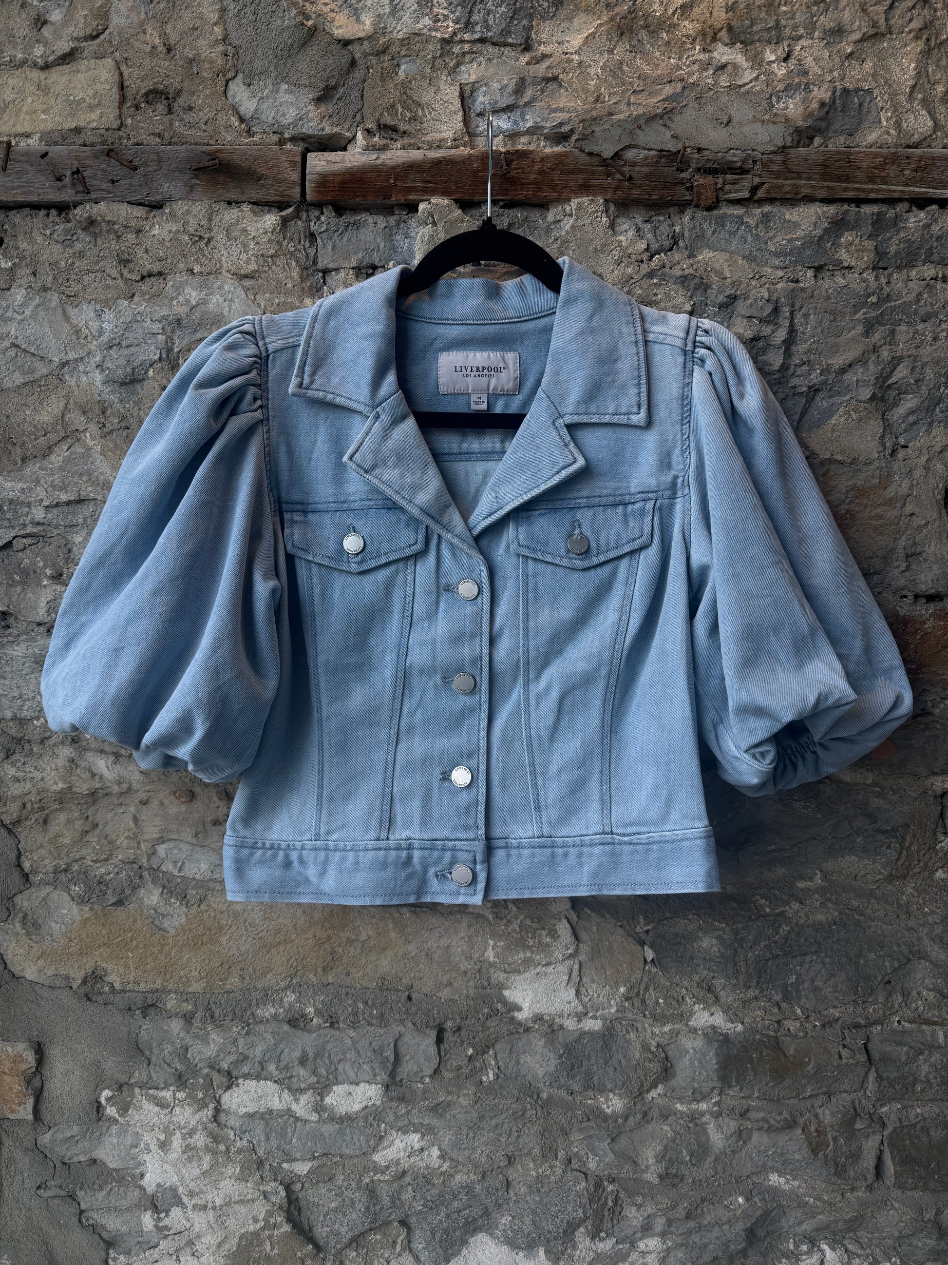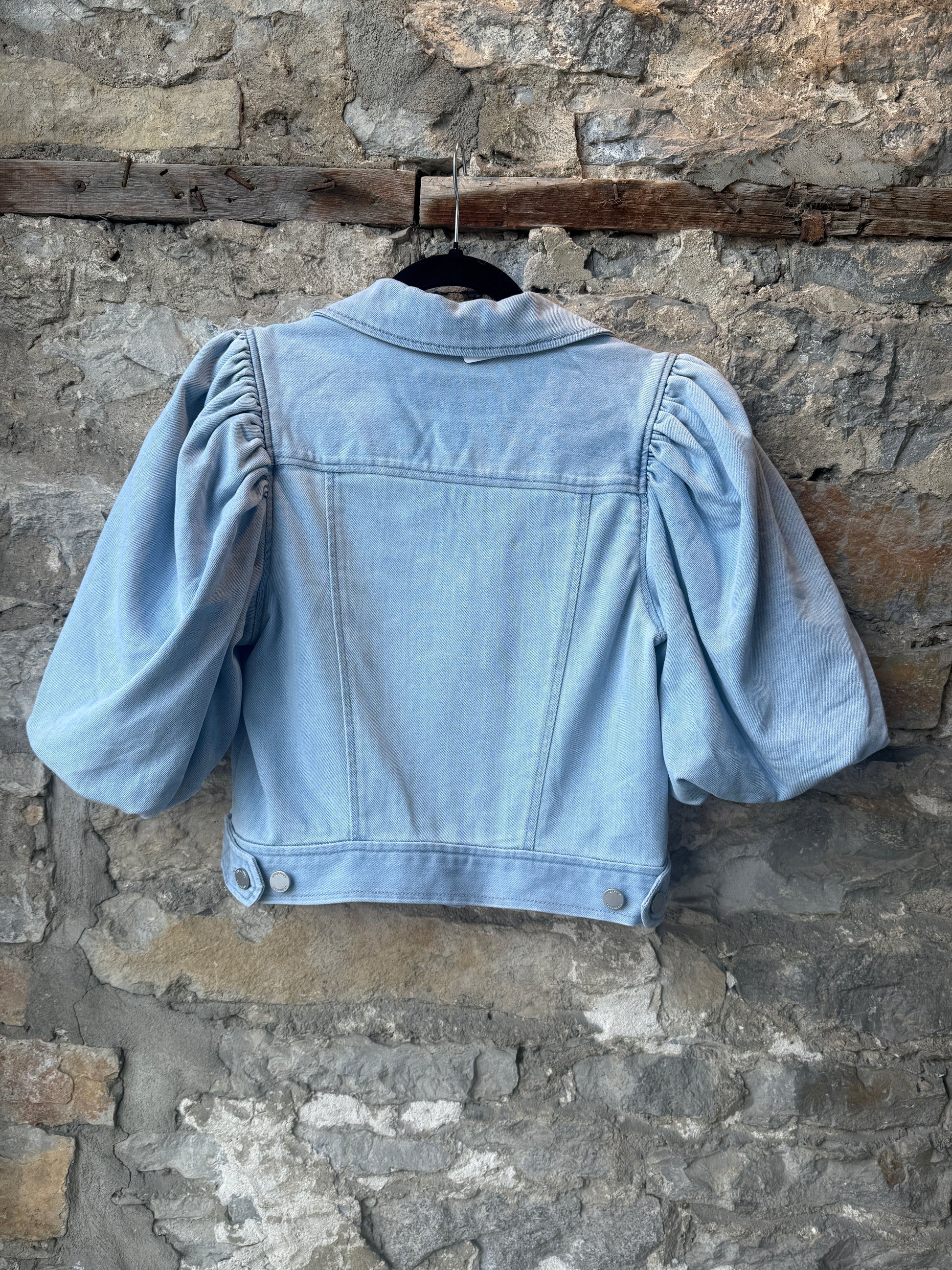 Stretch Cotton Puff Sleeve Cropped Denim Jacket
