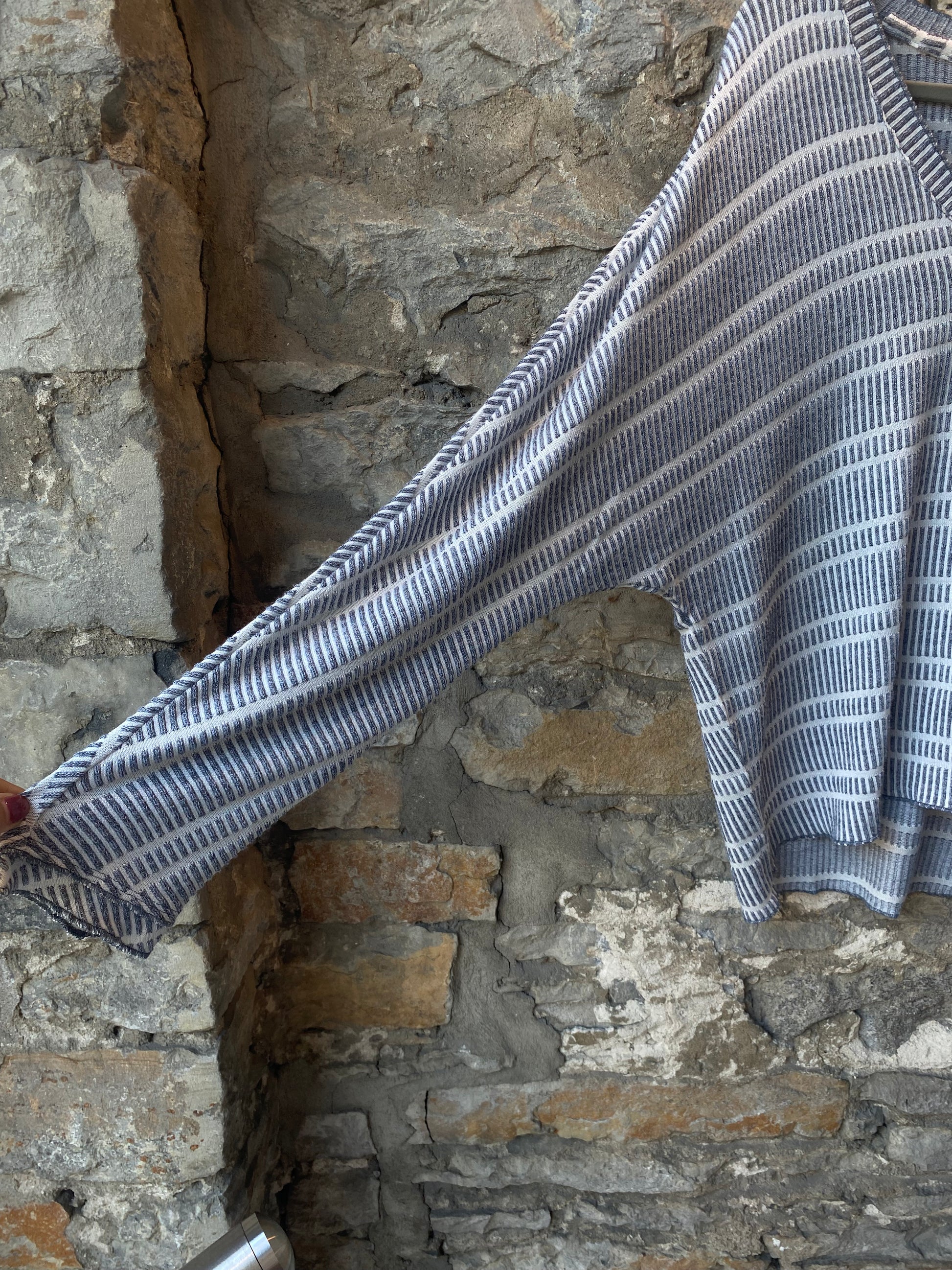 Oversized V-neck Dolman Sleeve Sweater -GREY and IVORY