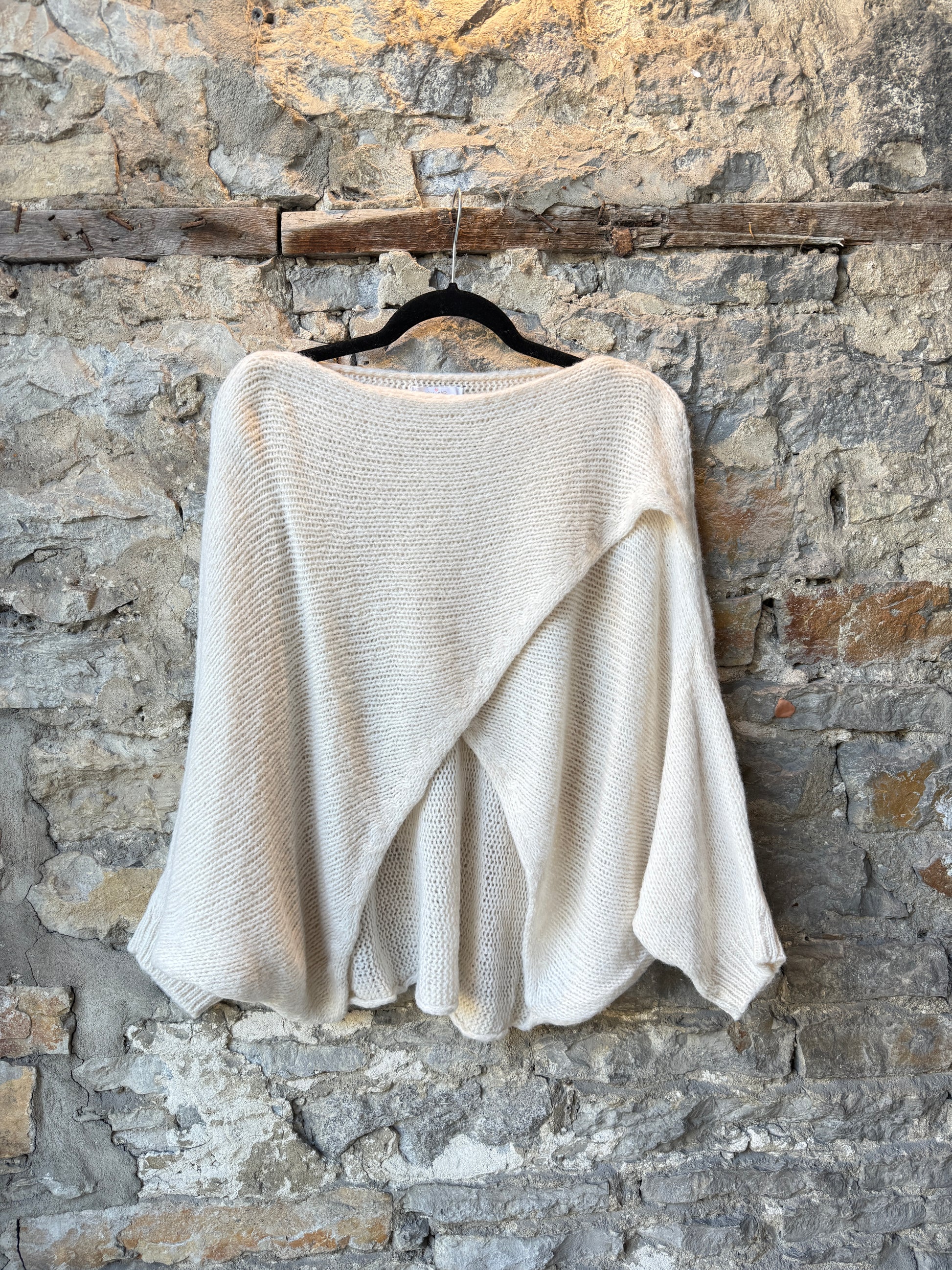 Wide Neck Cross Front Oversized Knit Sweater- IVORY