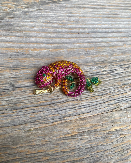 Pink and Orange Lizard Brooch with Bail